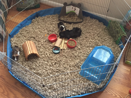 Podloga - sijeno nikako jer će biti cijelo popišano , novinski papir također ni u ludilu, jer sadrži olovo i zamorac se može otrovati; najbolja je ili piljevina ili pijesak, no problem je što zamorac može biti alergičan na nešto od to dvoje, pa pratiti kako se ponaša, ako često kiše i češka se, znači da mu podloga ne odgovara.